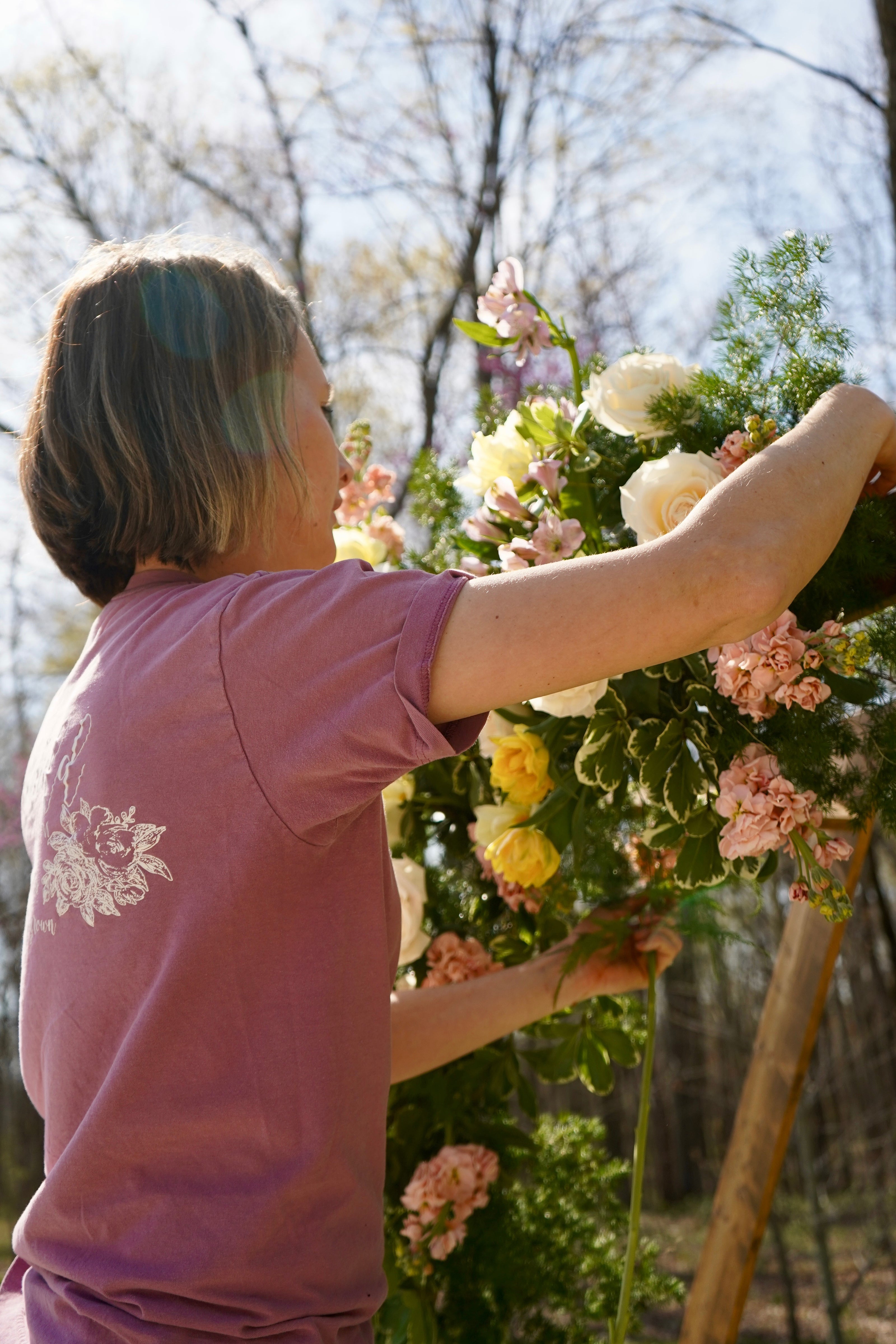 Initially, she thought that dream was market gardening, but she stumbled upon cut flowers and the rest is history. Her goal quickly became to have a flower farm where she could supply her community with blooms that are locally grown, without harmful chemicals - flowers that are fresh and not flown in on airplanes from other continents. She wanted to bring joy, memories, and love with flowers because that's what flowers do. She's had countless conversations with strangers about flowers - how they make people feel, how they remind them of their mothers or grandmothers, how they take them back to their childhood.